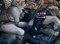 Wargs are a sort of wolves that often ally with orcs when they raid and plunder their surroundings. Many wargs died in the battle of the five armies (The Hobbit) and they are still not as numerous as in the old days. They use a verbal language to communicate. An orc on top of a warg is a lethal combination.