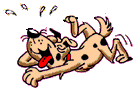 "Stand your dog". I said "Please sir, he's not lying down".
